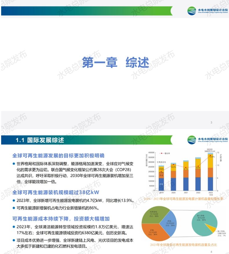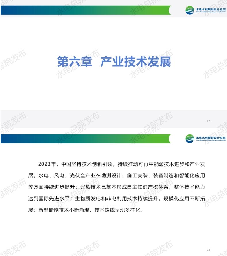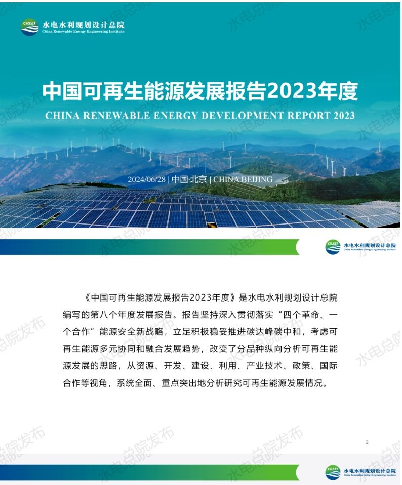6月28日,水電水利規劃設計總院《中國可再生能源發展報告2023年度》、《中國可再生能源工程造價管理報告2023年度》發布會正式召開。