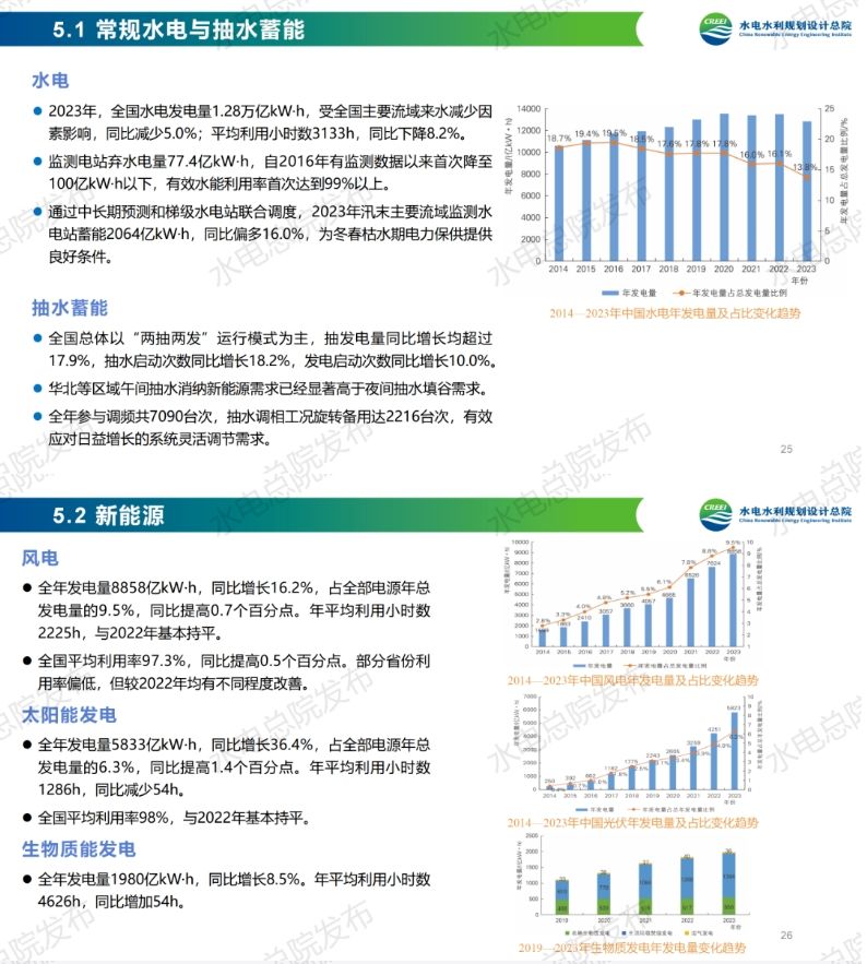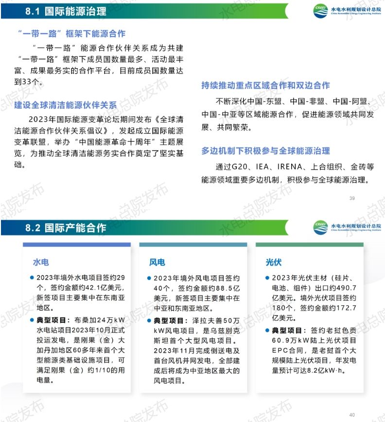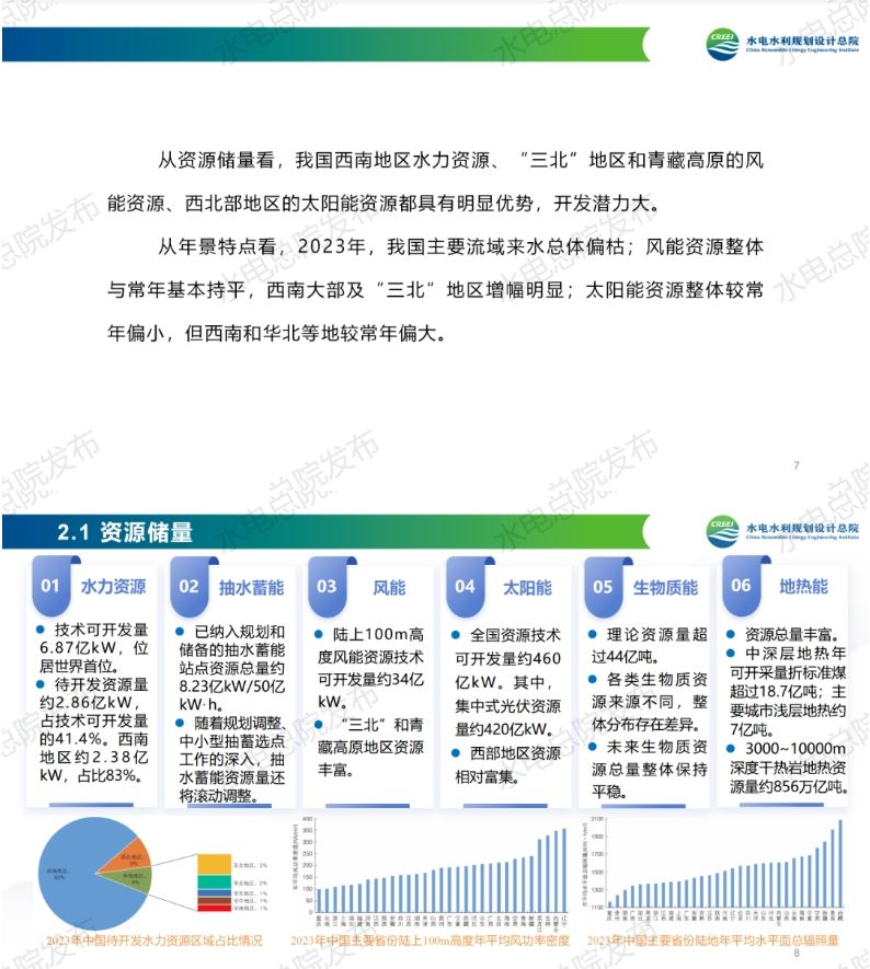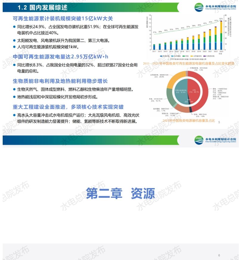 據了解,《中國可再生能源發展報告2023年度》是水電總院編寫的第八個行業年度發展報告。相較於以往分品種縱向分析可再生能源發展的思路,本次報告立足資源、開發、建設、利用、產業技術、政策、國際合作等多個視角,分析更加係統全麵、重點更加突出。