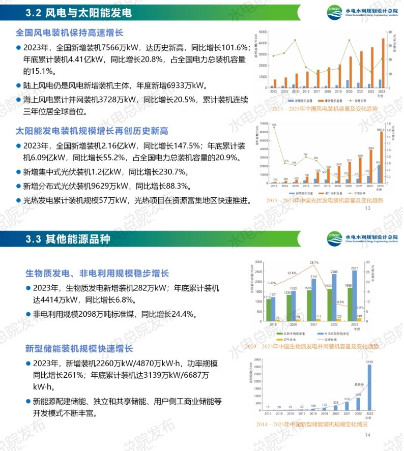 會議中,水電水利規劃設計總院黨委委員、副院長張益國對中國可再生能源發展報告2023年度進行詳盡分享,光伏們主要節選風能、太陽能、儲能相關發展情況,全文附在文末。