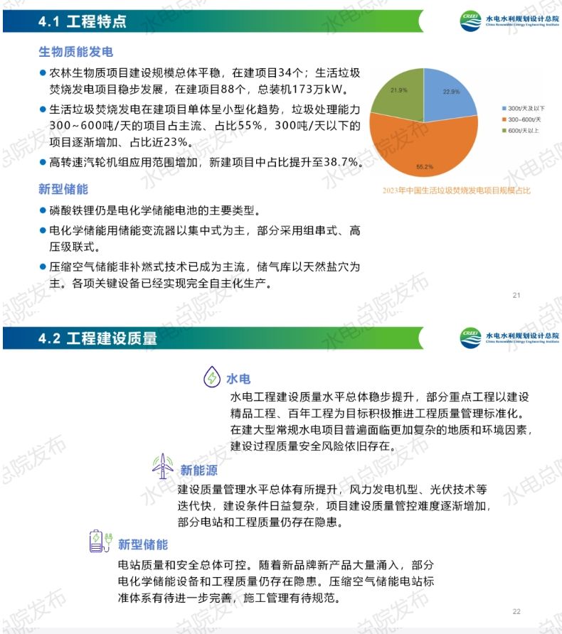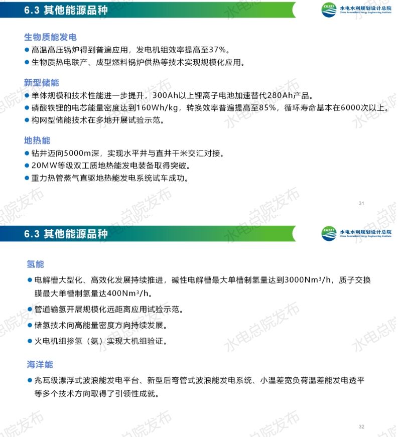2023年,中國堅持技術創新引領,持續推動可再生能源技術進步和產業發展。水電、風電、光伏全產業在勘測設計、施工安裝、裝備製造和智能化應用等方麵持續進步提升;光熱技術已基本形成自主知識產權體係,整體技術能力達到國際先進水平;生物質發電和非電利用技術持續提升,規模化應用不斷拓展;新型儲能技術不斷湧現,技術路線呈現多樣化。