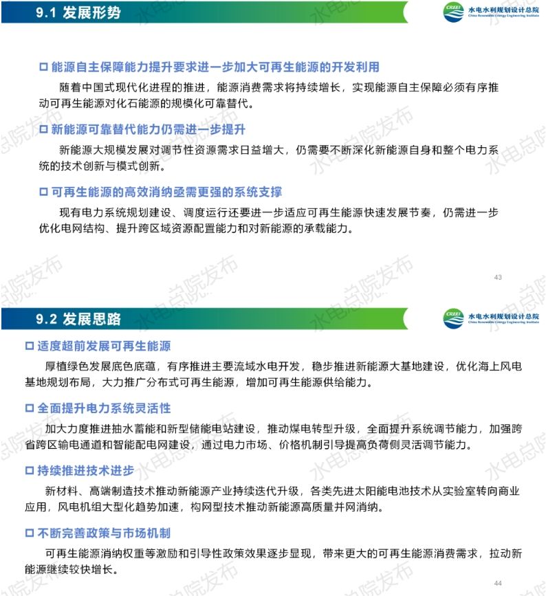 報告指出,未來的發展形勢將會進一步變化:能源自主保障能力提升要求進一步加大可再生能源的開發利用;新能源可靠替代能力仍需進一步提升;可再生能源的高效消納亟需更強的係統支撐。