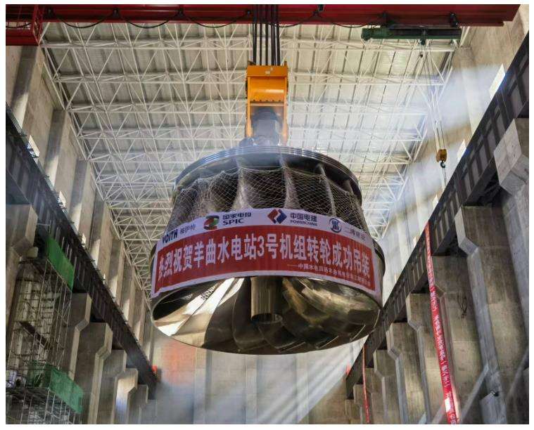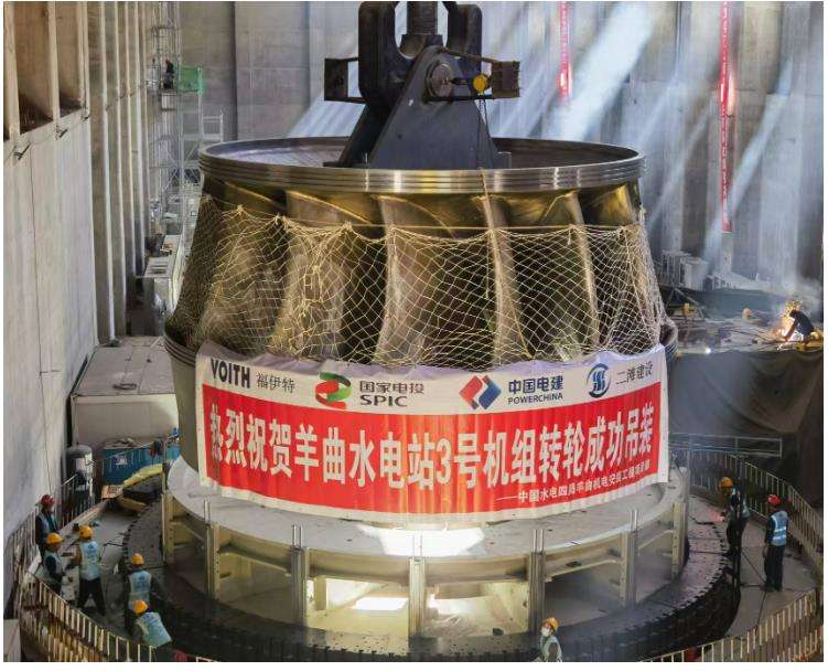 8月10日10時08分,隨著3號機組轉輪順利吊入機坑,標誌著羊曲水電站3台水輪機轉輪全部吊裝完成,為電站實現年內“一年三投”發電目標打下堅實基礎。