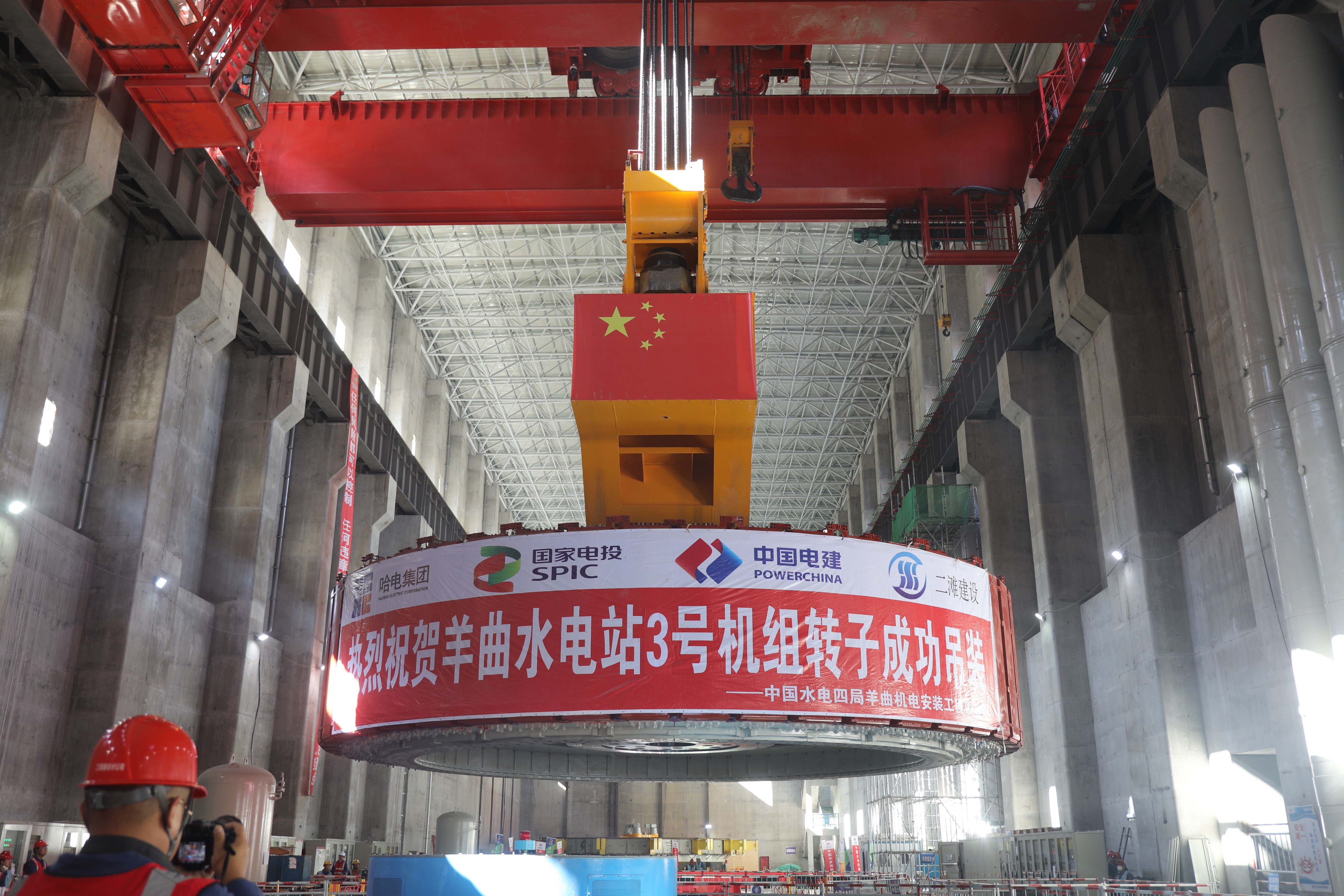 9月23日,由西北院勘測設計、水電四局承建的黃河羊曲水電站3號機組轉子完成吊裝,標誌著羊曲水電站3台機組轉子全部吊裝完成,為早日實現電站全部機組投產發電目標奠定了堅實基礎。