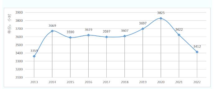 圖6-7 2013—2022年6000千瓦及以上水電設備利用小時數