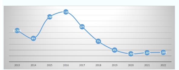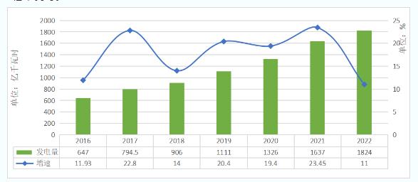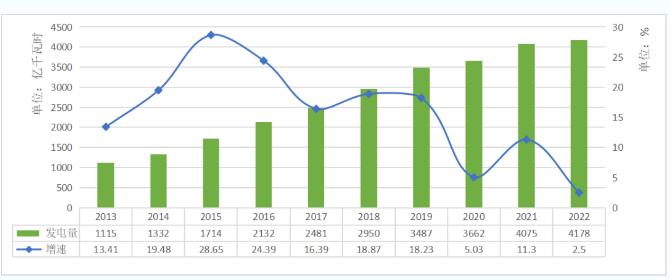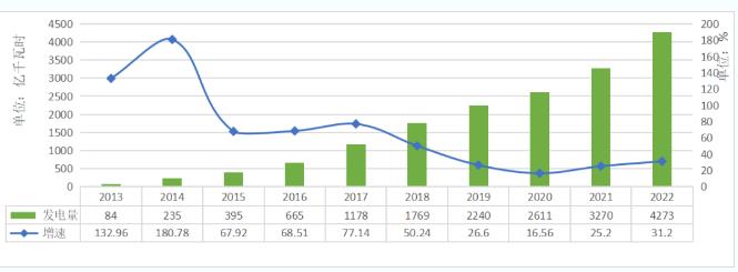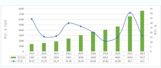 圖6-13 2013—2022年太陽能發電發電量及增速