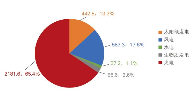2022 年河北省各類電源發電量(億kW·h)及占比
