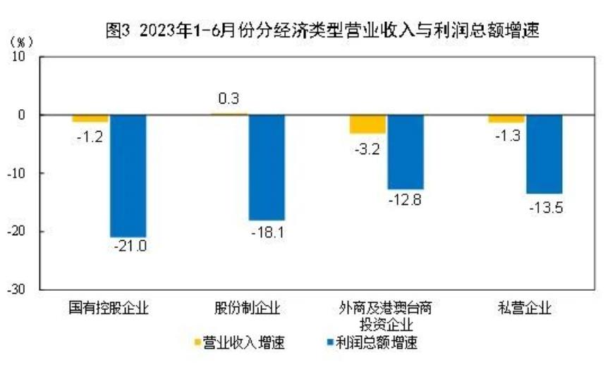 1—6月份,規模以上工業企業中,國有控股企業實現利潤總額12002.0億元,同比下降21.0%;股份製企業實現利潤總額24872.0億元,下降18.1%;外商及港澳台商投資企業實現利潤總額7966.8億元,下降12.8%;私營企業實現利潤總額8689.2億元,下降13.5%。