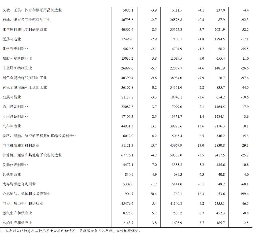 1—6月份,采礦業實現利潤總額6816.8億元,同比下降19.9%;製造業實現利潤總額23874.7億元,下降20.0%;電力、熱力、燃氣及水生產和供應業實現利潤總額3193.1億元,增長34.1%。