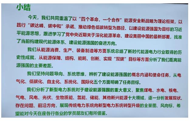 中國能源研究會特邀副理事長陳進行就《聚焦綠色低碳 ,深化能源革命,加快建設能源強國》作專題報告。