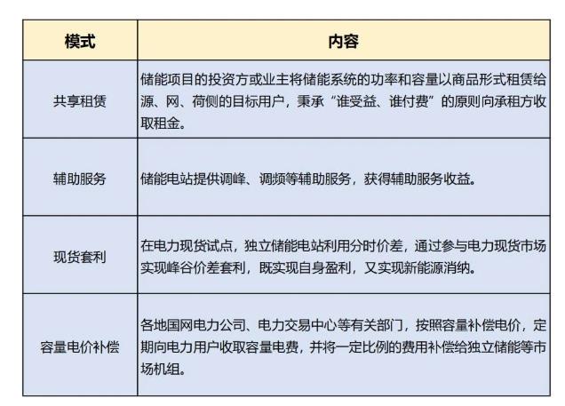 獨立儲能的運營模式主要分為兩種。一種是自投資、自運營,由獨立儲能運營商用自有資金或者其他融資方式獨立投資建設儲能電站,同時利用自己的運營、維護和檢修團隊對儲能電站進行日常運維,儲能電站獲取的全部收益歸自身所有。另一種是租賃,包括融資性租賃和經營性租賃。融資性租賃是獨立儲能運營商租賃儲能電站進行經營並負責儲能電站運維,在整個租賃期間獨立儲能運營商享有使用權但沒有所有權,租賃期滿後,儲能電站所有權轉移至獨立儲能運營商。經營性租賃是獨立儲能運營商聯合電池廠家共同建設儲能電站,獨立儲能運營商與電池廠家簽訂儲能核心設備租賃合同,由電池廠家提供儲能設備,獨立儲能運營商統一建設儲能電站,並由電池廠家在租賃期間內提供運維服務。該模式的優勢在於可引導電池廠家等社會資本進入儲能電站建設領域,減少儲能電站建設初始資金投入,實現儲能運營商與電池廠家的合作共贏。
