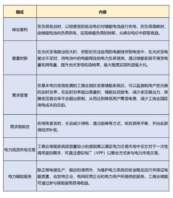 從盈利模式來看,工商業儲能盈利渠道有峰穀套利、能量時移、需求管理、需求側響應、電力現貨市場交易、電力輔助服務等,其中峰穀套利為最主要盈利方式。相比電源側、電網側儲能,目前工商業儲能的盈利模式最為成熟清晰。