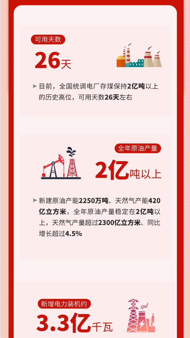 會議指出,最近全國多地出現強雨雪強寒潮天氣,對群眾生產生活帶來較大影響。能源係統要堅決貫徹落實習近平總書記對低溫雨雪冰凍災害防範應對工作的重要指示精神,牢固樹立安全發展理念,增強風險意識,壓實工作責任,深入排查風險隱患,抓好防範應對處置,切實做好能源保障和保暖保供,確保人民群眾溫暖過冬、安全過冬。